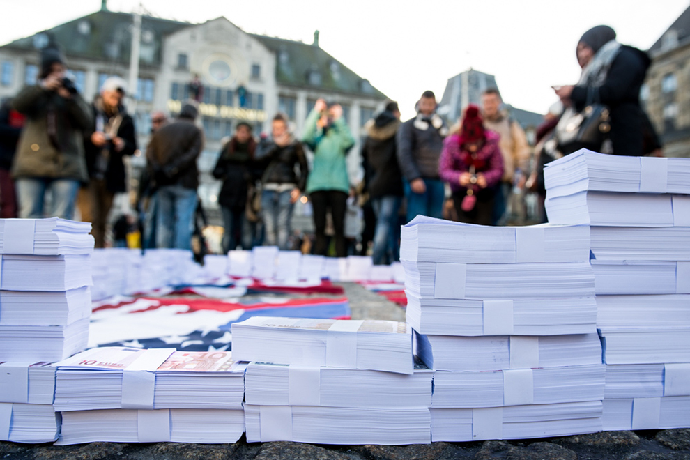 The artist lets passersby take stacks of cash away with them, and as they do, the walls slowly come down. Perhaps a universal basic income is the only way to universal basic human unity.